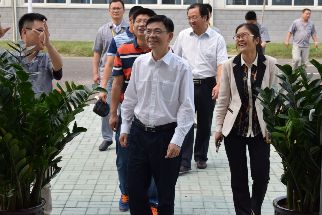 (天分司杜志清經(jīng)理引導(dǎo)總部領(lǐng)導(dǎo)參觀生產(chǎn)現(xiàn)場)