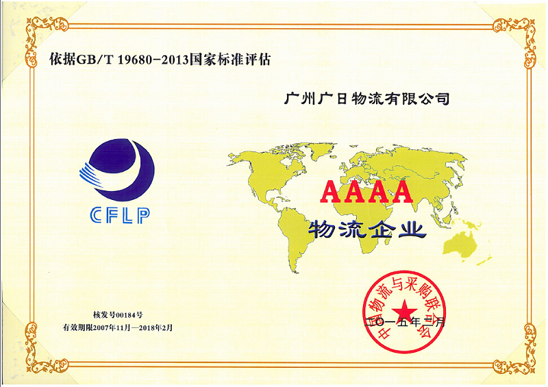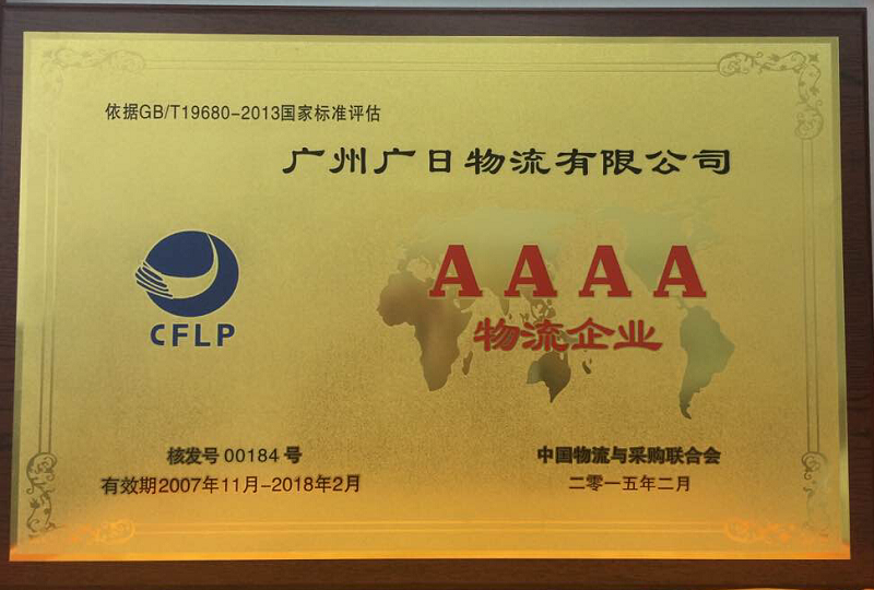 廣日物流榮獲 “4A物流企業(yè)”稱號