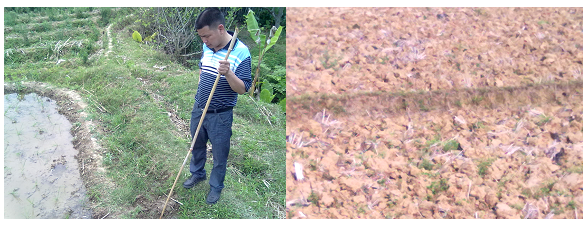 (村長(zhǎng)指著無(wú)水的溝渠,很無(wú)奈) (旱情嚴(yán)重,部分水田無(wú)法耕種)