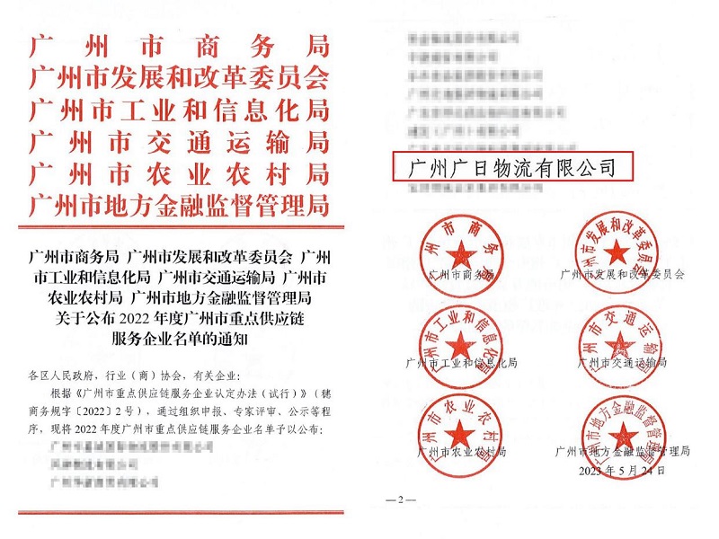 廣日物流獲評首批“廣州市重點供應(yīng)鏈服務(wù)企業(yè)”榮譽(yù)稱號