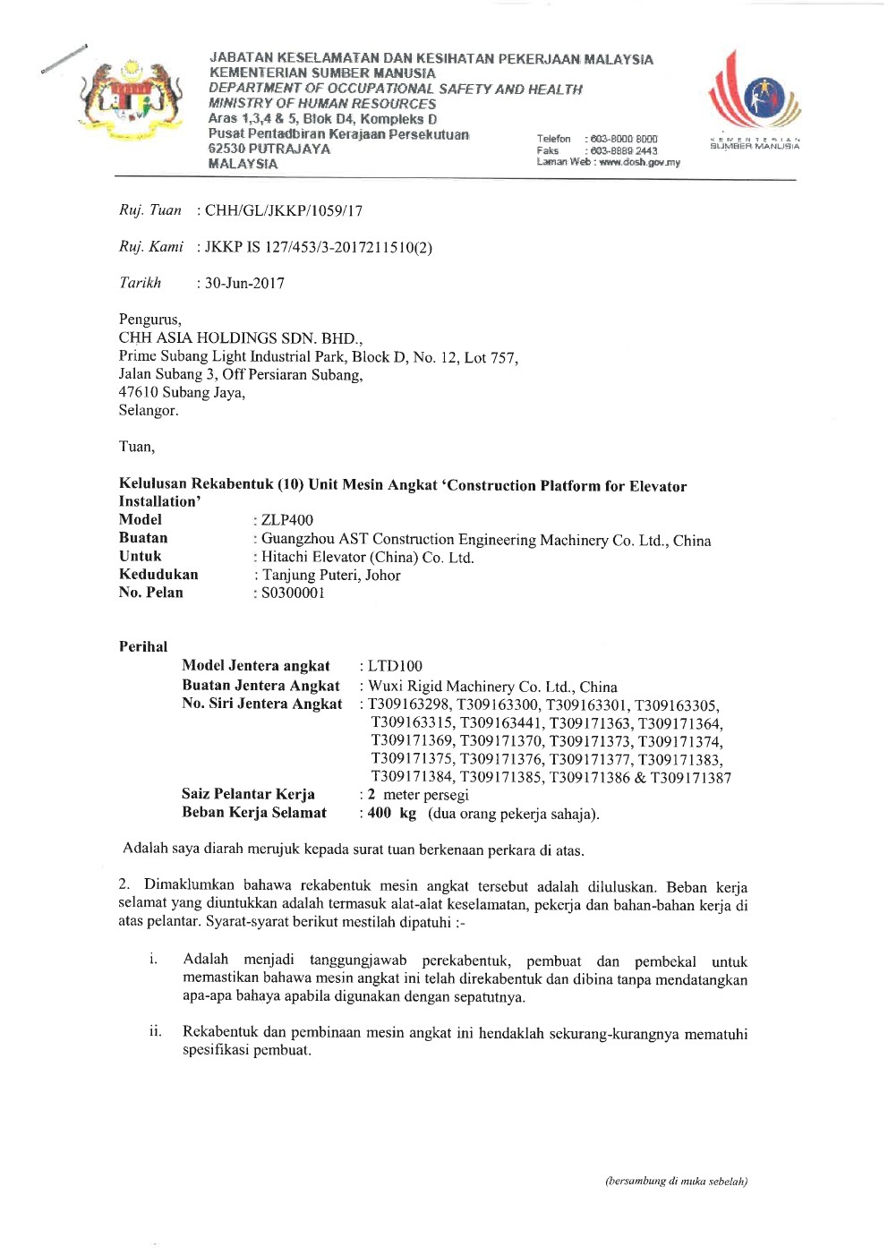 為順利推進馬來西亞項目的電梯專用施工平臺安裝工作,廣日物流下屬子公司廣州安速通建筑工程機械有限公司聯(lián)合日立電梯于今年4月向馬來西亞JKKP(職業(yè)安全與衛(wèi)生局)申請使用電梯專用施工平臺工法。經(jīng)過馬來西亞JKKP多重嚴格評審,近日,電梯專用施工平臺工法順利通過當(dāng)?shù)貙<诣b定,安速通公司成功獲得認證證書,實現(xiàn)了開拓海外市場的新突破。