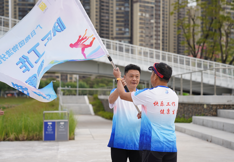 公司黨總支書記、董事長劉學輝同志親臨活動現(xiàn)場,為本次跑團成立授旗并參與到健康跑活動中。